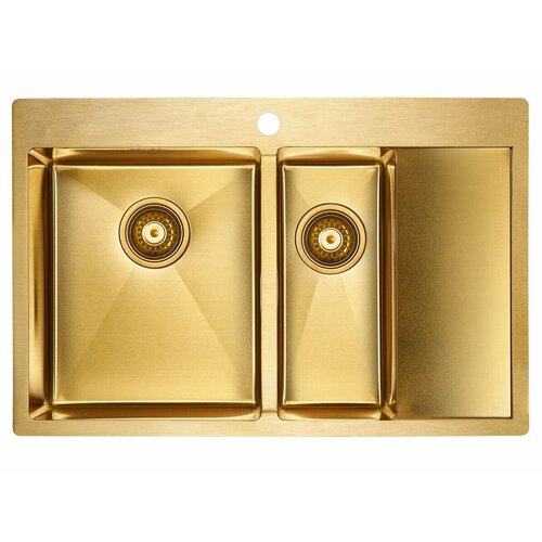 Мойка нерж. сталь TWIN, PM237844-BG, брашированное золото, 780х440мм, Paulmark