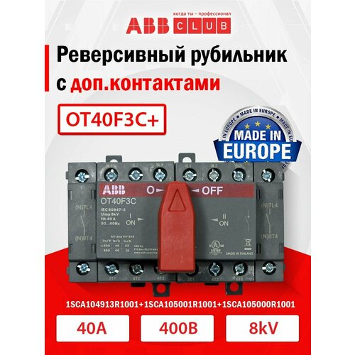 Реверсивный рубильник ABB OT80F3C 80А 3P IP20 с красной ручкой, DIN-рейка, переднее управление, 1SCA105402R1001