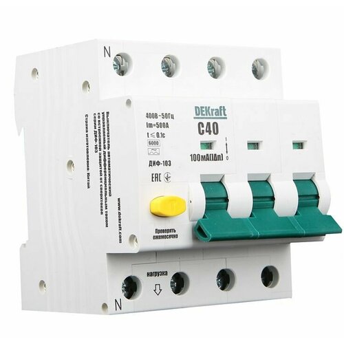 Выключатель автоматический дифференциального тока 4п (3P+N) C 16А 30мА тип A 6кА ДИФ-103 | код.16238DEK | DEKraft (3шт. в упак.)