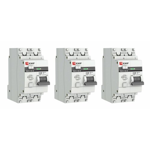 Дифференциальный автомат АД-32 1P+N 20А/30мА (хар. C, AC, электронный, защита 270В) 4,5кА EKF PROxima 3 штуки