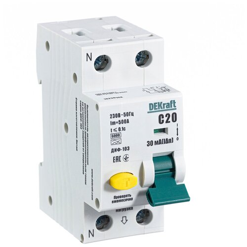 Дифференциальный автомат DEKraft ДИФ-103 2П 30 мА C 6 кА A электромеханический