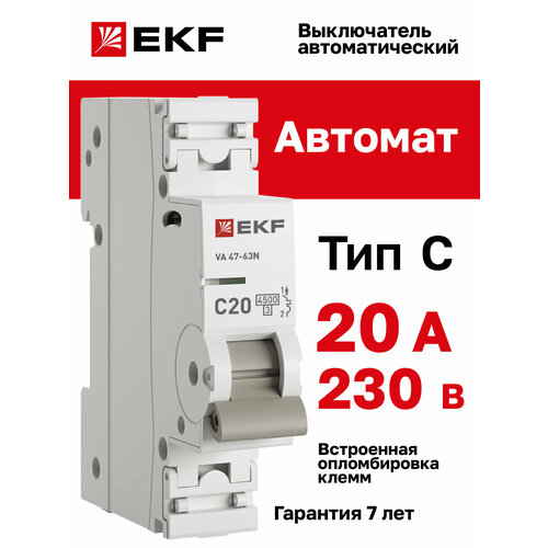 Автоматический выключатель ВА 47-63N 1P 20А (C) 4,5 кА PROXIMA EKF