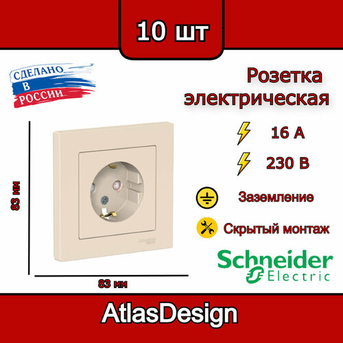 Розетка с заземлением, со шторками, в сборе, бежевая Schneider Electric AtlasDesign (комплект 10шт)