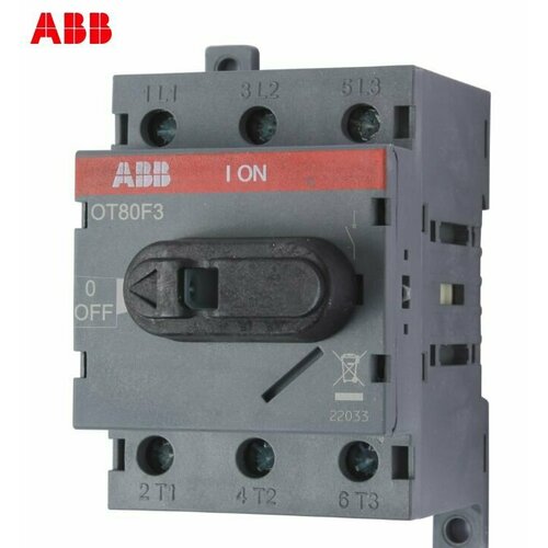 Реверсивный рубильник ABB OT125F3C 125А IP20 DIN 6P с красной ручкой переднее управление, 1SCA105037R1001