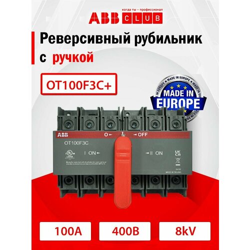 Реверсивный рубильник ABB OT100F3C до 100А, 3-полюсный ABB 1SCA105008R1001+1SCA108690R1001 с ручкой OHRS9/1