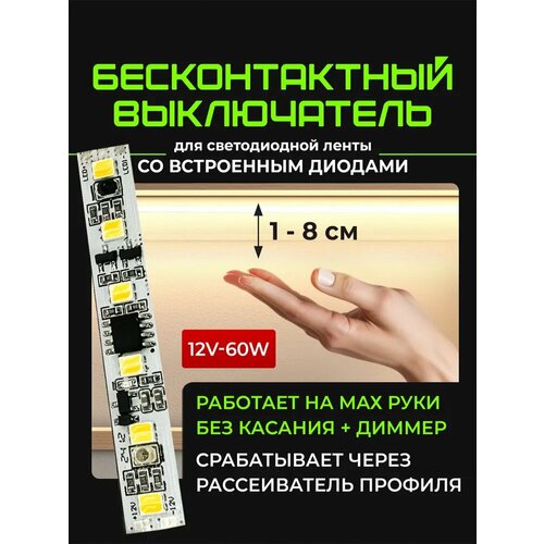 Бесконтактный сенсорный выключатель в алюминиевый профиль для светодиодной ленты на взмах руки со встроенными диодами