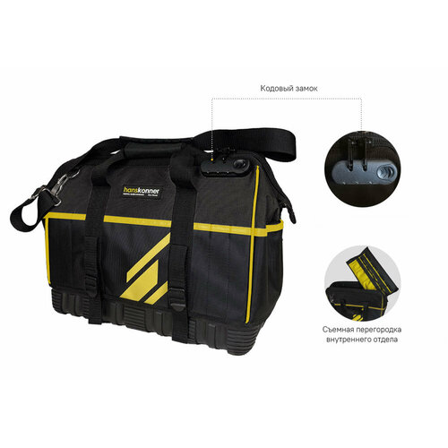 Сумка для инструментов Hanskonner HKTB0138, съёмная перегородка, кодовый замок, 38 карманов, полиэстер