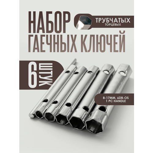 Набор гаечных ключей трубчатых торцевых 6 предметов, 8-17мм, цвет - серебристый