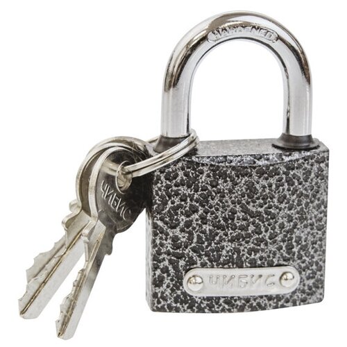 Замок навесной `чибис` CRS364 38 мм сталь, полимер покр, закал дуж(d=6), резин кольца,3 англ кл, кор