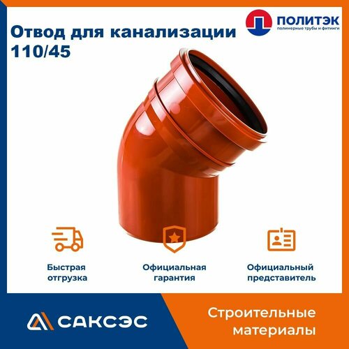 Отвод для наружной канализации 110/45 полипропиленовый, Политэк