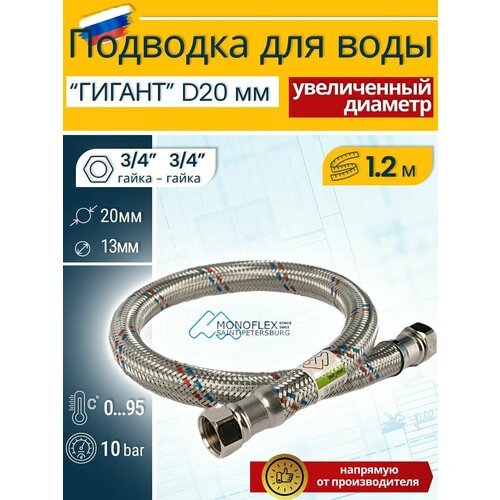 Гибкая подводка для воды 3/4" 120см гайка-гайка MONOFLEX Гигант 20мм, длина 1,2м/1.2м, 1шт/уп