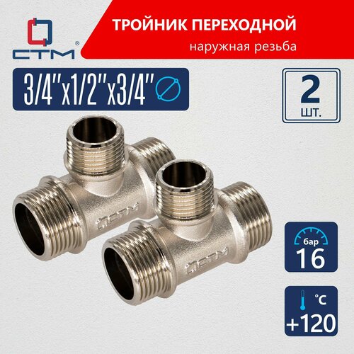 Тройник переходник для трубы 3/4" x 1/2" x 3/4" наружная резьба CTM 2шт
