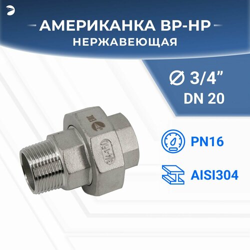 Американка нр/вр наружная внутренняя резьба нержавеющая, AISI304 DN20 (3/4") дюйма, PN16