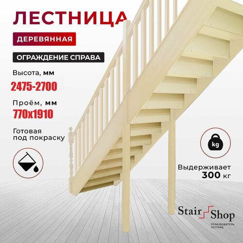 Стаиршоп Деревянная лестница для дома проем от 770х1910 мм высота 2700 мм (правая)