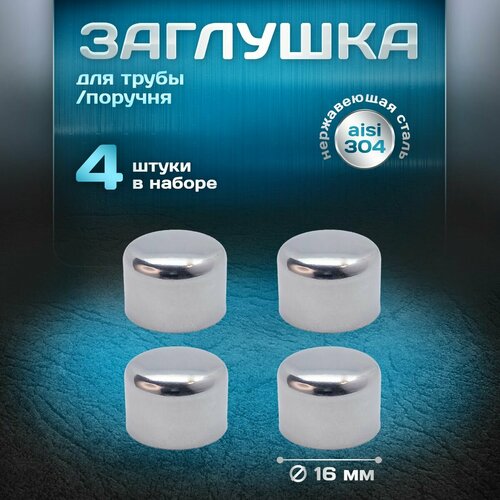 Заглушка наружная облегченная для трубы/ригеля/леера диаметром 16 мм, нержавеющая сталь aisi 304, 4 шт.