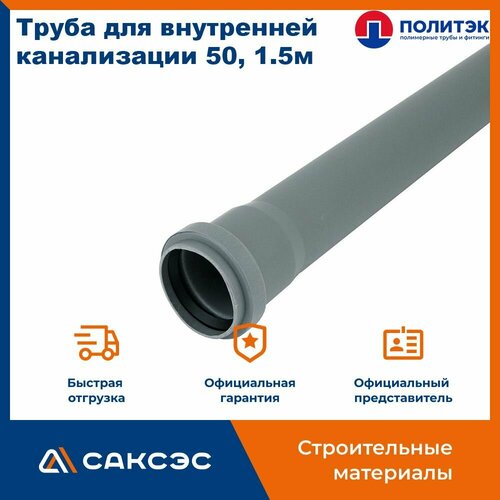 Труба для внутренней канализации 50 полипропиленовая, 1.5м, Политэк
