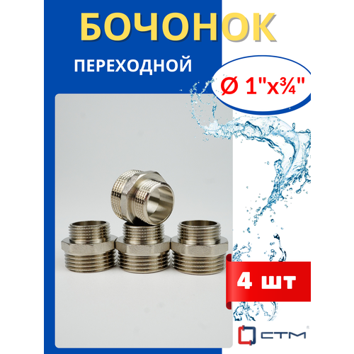 Бочонок (ниппель) латунный 1х3/4 переходной (СТМ) 4шт.