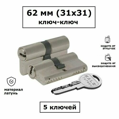 Личинка замка 62 мм (31х31) с перфоключами Kale kilit (Кале) 164SN никель цилиндровый механизм