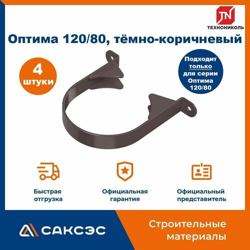 Хомут для водосточной трубы Технониколь Оптима 120/80, темно-коричневый / Крепление водосточной трубы ПВХ Технониколь (4 шт в комплекте)