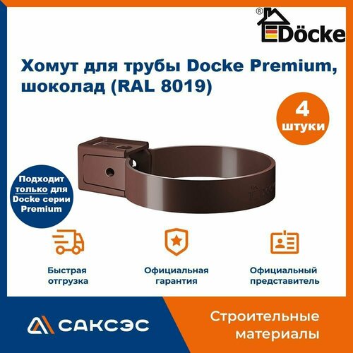Хомут для водосточной трубы Docke Premium, шоколад (RAL 8019) / Крепление водосточной трубы ПВХ Деке Премиум (4 шт в комплекте)