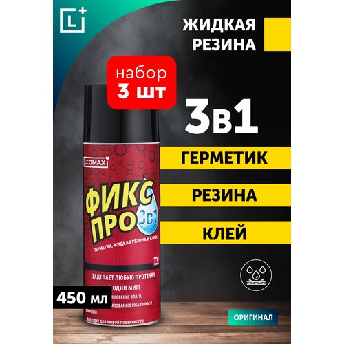 Жидкая резина Фикс Про 3в1 Leomax, 450мл, набор 3шт