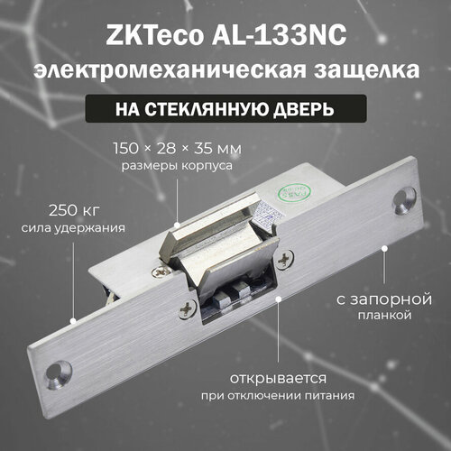 Электромеханическая защелка ZKTeco AL-133NC на стеклянную дверь / без питания ригель электрозащелки разблокирован