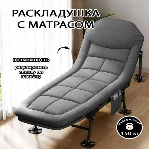 Кровать раскладушка с матрасом взрослая туристическаядля трансформатор для сна для кемпинг для зимней рыбалки садовой шезлонг для дачи и отдыха на природе