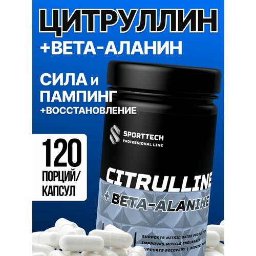 Цитруллин малат+Бета-аланин citrulline+, витамины спортивное питание аминокислоты для энергии и выносливости, 500 мг, 120 капсул