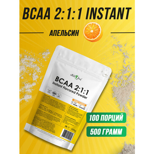 Незаменимые аминокислоты БЦАА для восстановления, рост мышц Atletic Food BCAA 2:1:1 Instant Flavored Powder, 500 г, апельсин