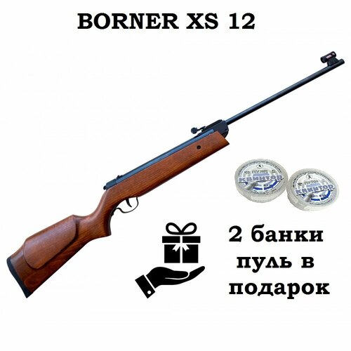 Пневматическая винтовка Borner XS12 (дерево) 4.5 мм. + 2 банки пуль