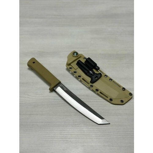 Нож туристический Танто Recon 4 в 1 с тактическим чехлом Бежевый | белое лезвие