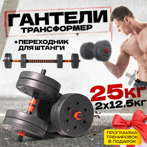 Гантели разборные титан для фитнеса + штанга спортивная 2 шт. по 12 кг