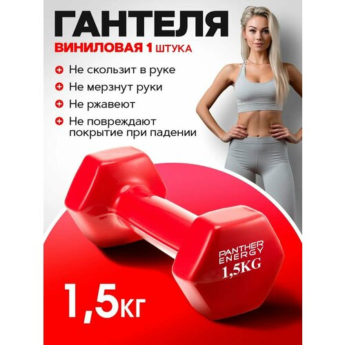 Гантель Panther Energy, виниловое покрытие, неразборная, 1.5кг