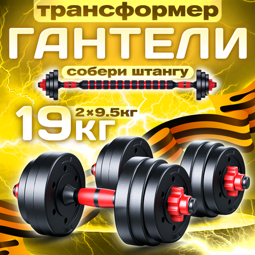 Гантели разборные титан для фитнеса + штанга спортивная, общий вес 19,5 кг, 2 гантели по 9.5 кг+ штанга 1 кг