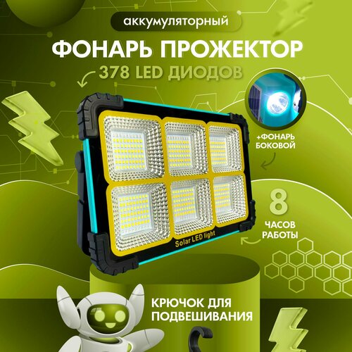 Фонарь кемпинговый / Фонарь прожектор мощный аккумуляторный светодиодный на солнечной батарее Power Bank с магнитными креплениями подвесной 4 режима