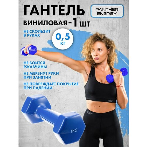 Гантель Pantera Energy, D-образная, виниловая, для фитнеса, 0,5кг, синяя синий