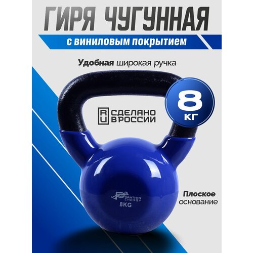 Гиря чугунная для фитнеса виниловая Panther Energy Синяя 8 кг