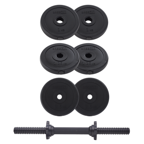 Штанга BASEFIT BB-410 20 кг, разборная из металлического грифа и пластиковых дисков. Для дома зала тренировок фитнеса похудения