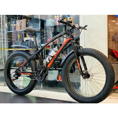 Горный велосипед Фэтбайк GROM, 26*4.0 дюймов / взрослый, мужской и женский для прогулки / скоростной, спортивный велик для подростков черно-оранжевый