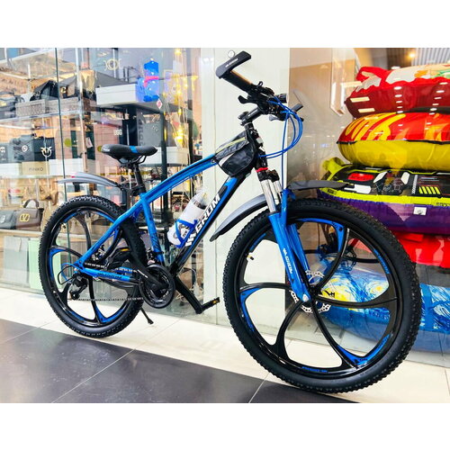 Горный велосипед на дисках GROM, городской, 26 дюймов / взрослый, мужской и женский для прогулки / скоростной, спортивный велик для подростков черный/синий