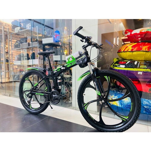 Горный складной велосипед на дисках GROM, городской, 26 дюймов / взрослый, мужской и женский для прогулки / скоростной, спортивный велик для подростков черный/зеленый
