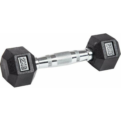 Гантель 2 кг обрезиненная, гексагональная, хромированная ручка