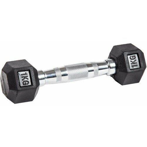 Гантель 1 кг обрезиненная, гексагональная, хромированная ручка