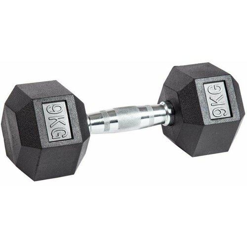 Гантель 9 кг обрезиненная, гексагональная, хромированная ручка