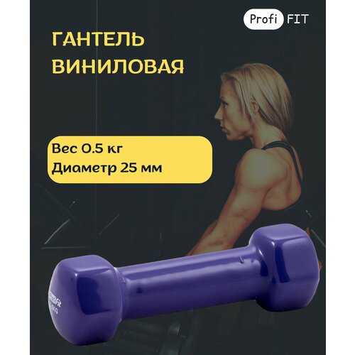 Гантель в виниловой оболочке, шестигранник 0,5 кг, фиолетовая PROFI-FIT