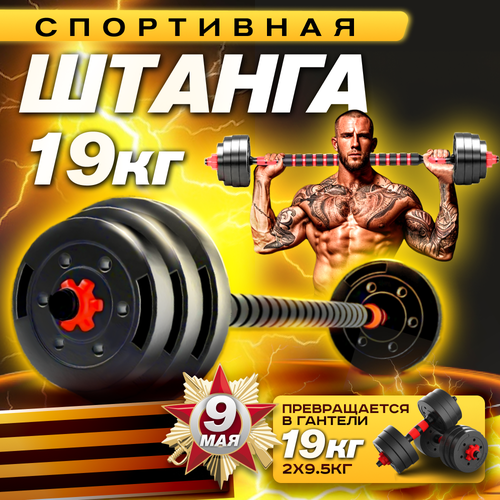 Гантели разборные титан для фитнеса + штанга спортивная, общий вес 19,5 кг, 2 гантели по 9.5 кг+ штанга 1 кг