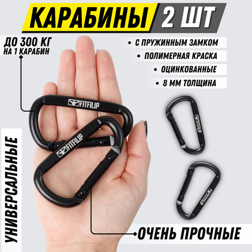 Карабины металлические 2шт 8мм спортивные универсальные, мощные и прочные с затвором