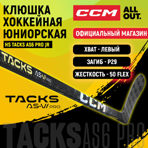 Клюшка хоккейная композитная CCM HS TACKS AS6 PRO JR, загиб 29L, юниорские, левый хват, жесткость 50