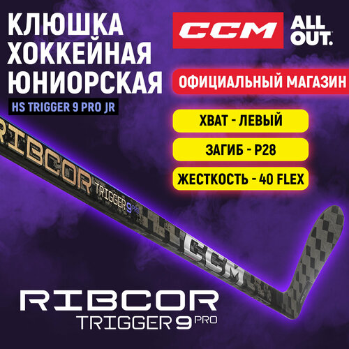 Клюшка хоккейная композитная CCM HS RIBCOR TRIGGER 9 PRO JR, загиб 28L, юниорские, левый хват, жесткость 40
