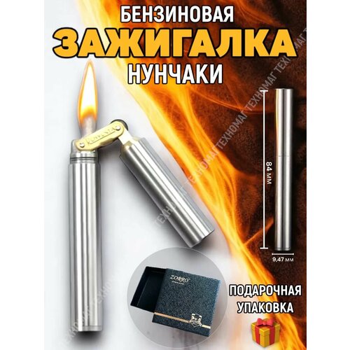 Зажигалка бензиновая Нунчаки золотой с гравировкой